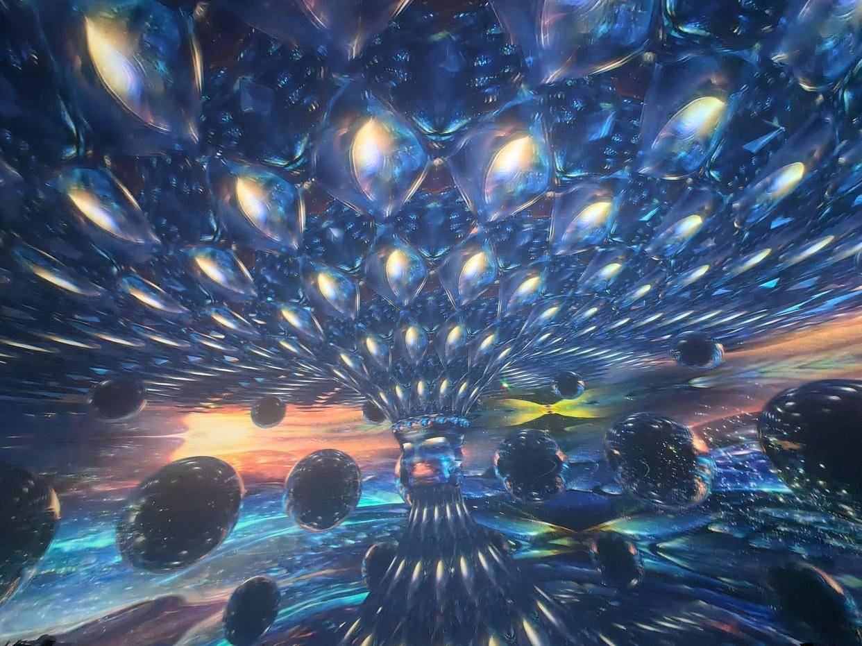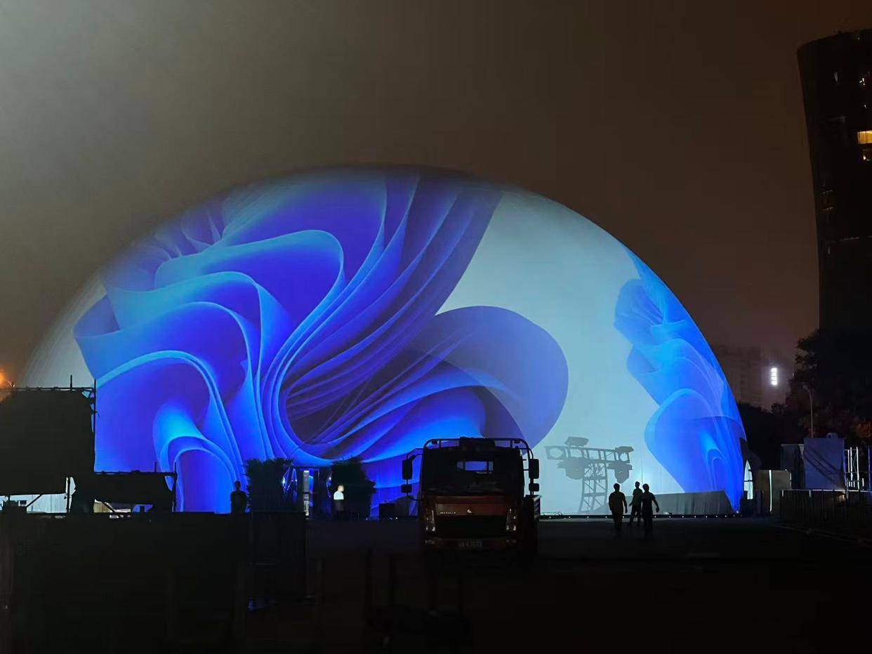 9月30日,记者进行了现场走访,现场正在进行最后的活动布场工作,踏入42米的巨型球幕,彷佛进入了另外一个空间。球幕影院圆顶式结构如同苍穹,360°全包裹沉浸感,超大空间里播放着不同主题的视频画面,数字环绕立体声效让人沉浸在栩栩如生的荧幕世界里,震撼的画面,带来观感强烈的视听震撼和艺术享受。