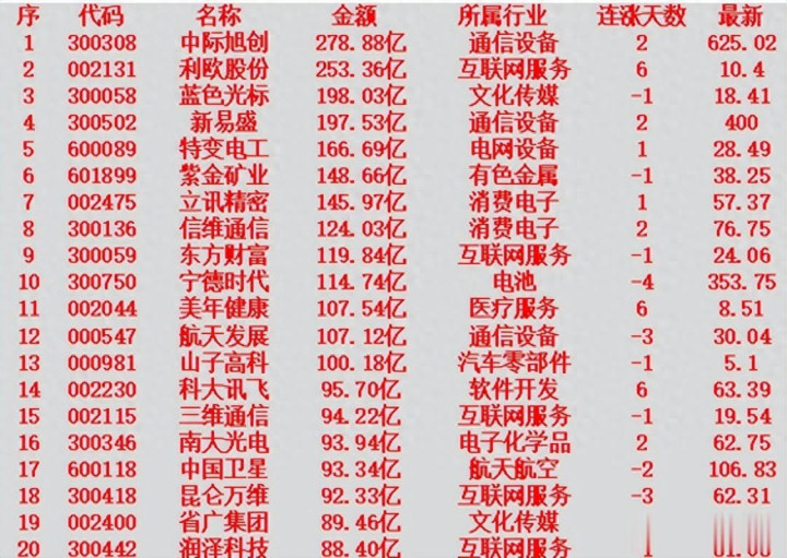1 300308 中际旭创 278.88亿