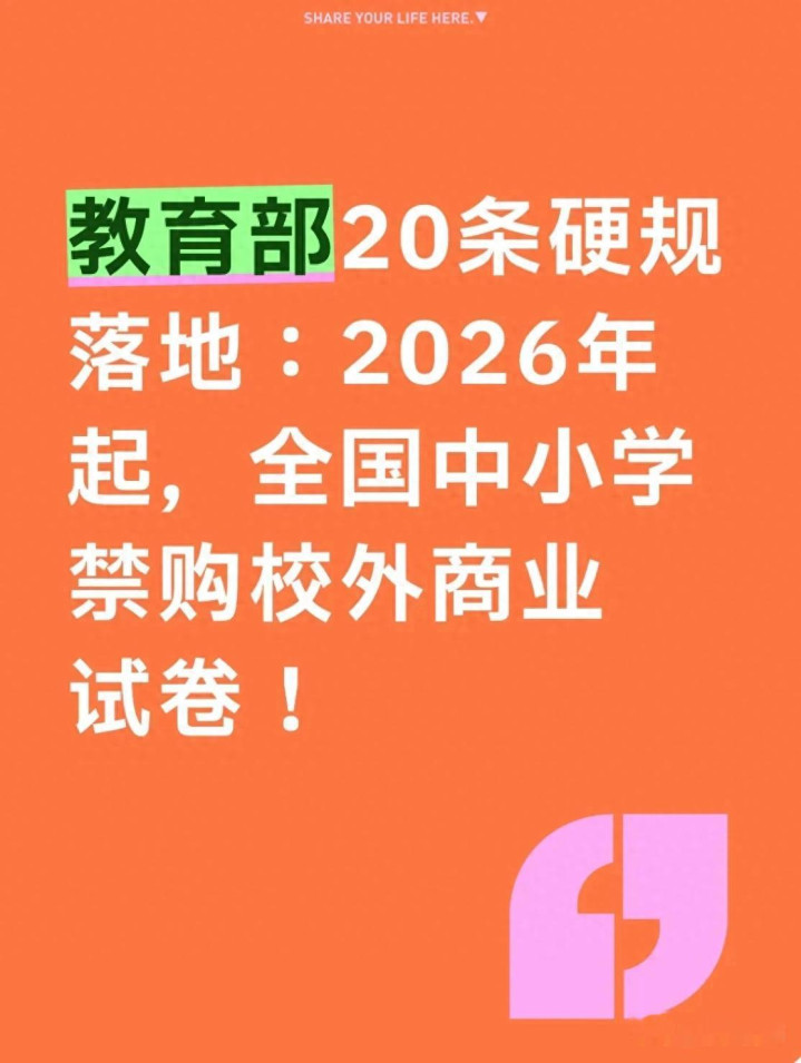 教育部2026年禁购校外商业试卷的新政,你怎么看?对家里的孩子来说,是真正的成长松绑还是需要更强的自主学习能力?作为家长或教师,你最关心新政落地后的哪些细节(比如本地题库质量、教师命题水平等)?欢迎在评论区分享你的观点和疑问,一起探讨更科学的教育方式!