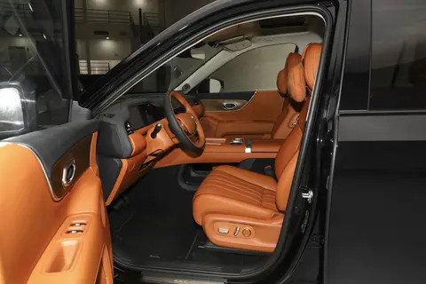 座椅采用无铬鞣制Nappa真皮,触感细腻且无有害物质释放。前排主驾支持12向电动调节、记忆与加热/通风功能;副驾搭载五星SPA零重力座椅,拥有18个精准按摩点,一键开启零重力模式后,座椅呈110°倾斜状态,配合429mm超宽腿托与10点气动按摩,实现“躺平式”放松。第二排独立座椅支持前后150mm滑动与148°靠背调节,配备通风、加热、按摩功能,中间通道宽度超200mm,方便进出第三排。第三排座椅支持电动调节与独立空调出风口,实测身高178cm的乘客仍能获得一拳头部空间与两拳腿部空间。